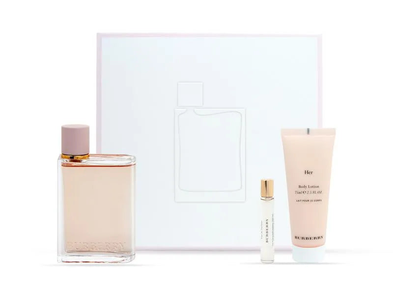 مجموعة بربري فور هير أو دو برفيوم 100 مل: بربري فور هير أو دو برفيوم 100 مل + بربري فور هير لوشن للجسم 75 مل + بربري فور هير أو دو برفيوم 7.5 مل.