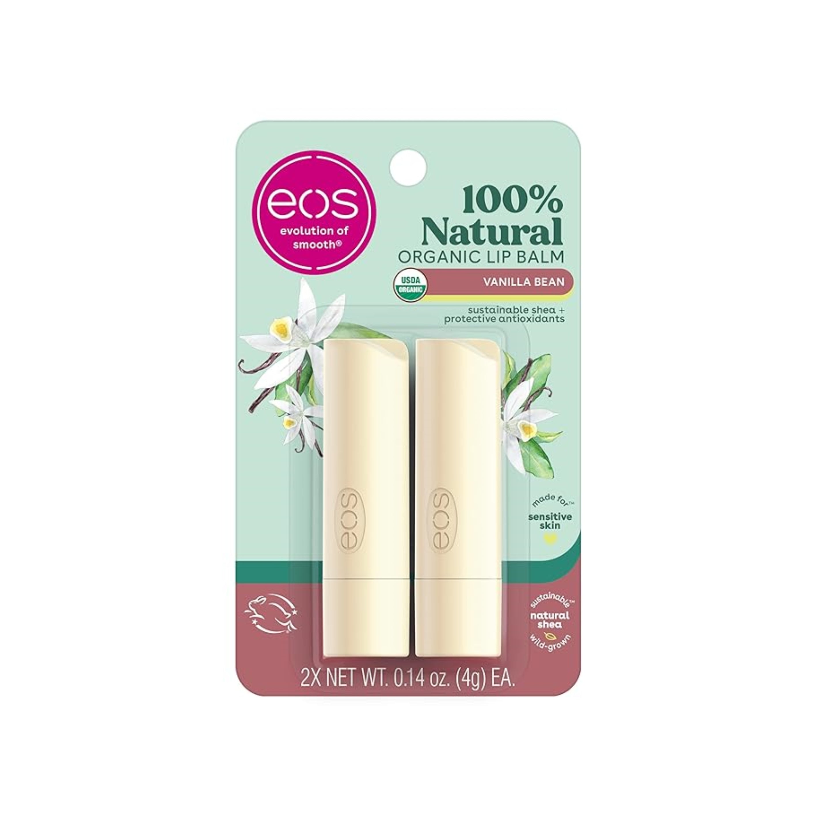eos Natural & Organic Lip Balm Sticks- Vanilla Bean, All-Day Moisture, Dermatologist Recommended 2-Pack